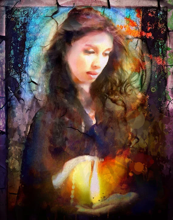 Here, she manifests as the Goddess of healing, of fire, the hearth and of energy. She bestows the gifts of creativity and fertility and is said to lean over every cradle. She is poised in Her sovereignty and carries the protection of her isles and the sea.